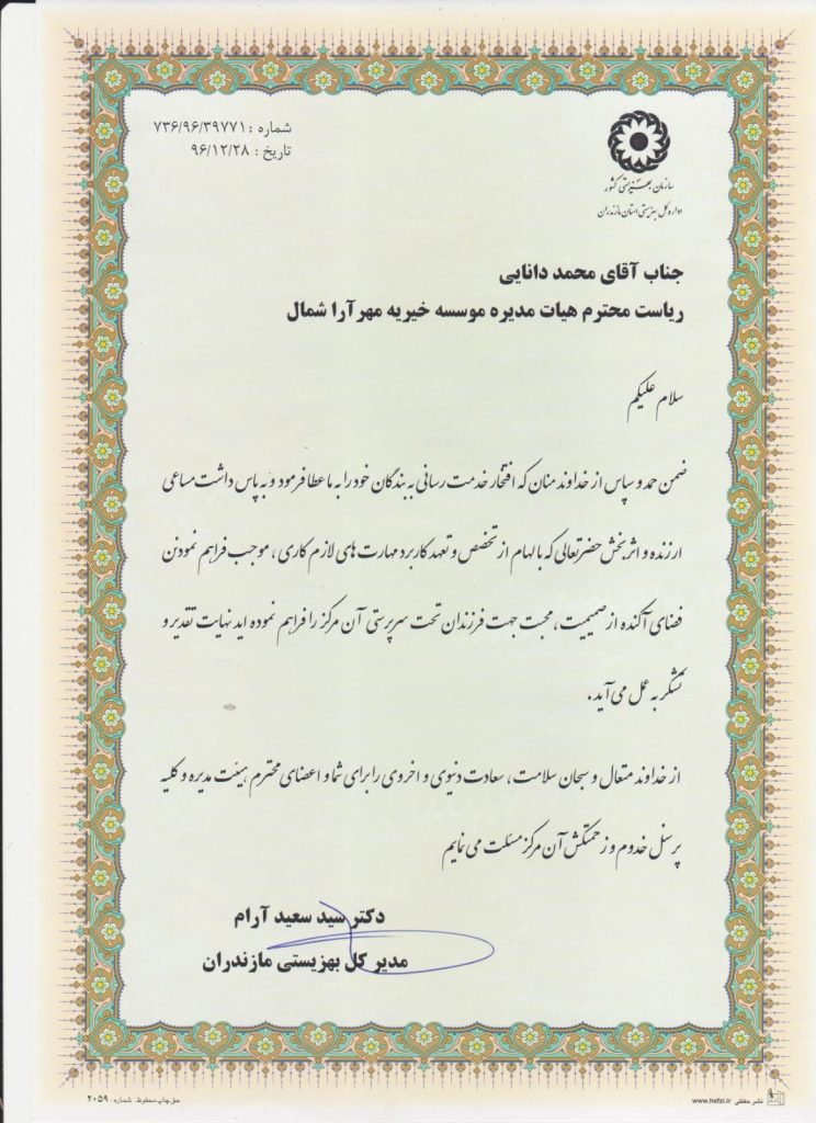 موسسه همیاری مهرآرا در سال 1392 با شماره ثبت 637 و با هدف توانمندسازی زنان سرپرست خانوار و کودکان بدسرپرست زیر 15 سال فعالیت خود را در استان مازندران، شهرستان بابل اغاز نمود و در سال 1396_1397 خانه های نگهداری شبانه روزی از کودکان بدسرپرست و بی سرپرست 3 الی 12سال را با هدف ارائه خدمات مطلوب وساماندهی احداث نمود و تاکنون به فعالیت خود ادامه داده است. مهرارا یک موسسه غیردولتی مرم نهاد است و با جذب مشارکت از خیرین و نیکوکاران ارجمند در تلاش است تا بستری حمایتی برای جامعه هدف فراهم نماید.